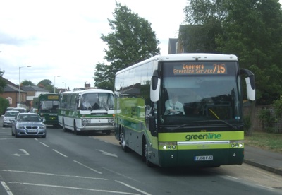 Line RT). Arriva's 47-foot long tri-axle Van Hool 4379 leads